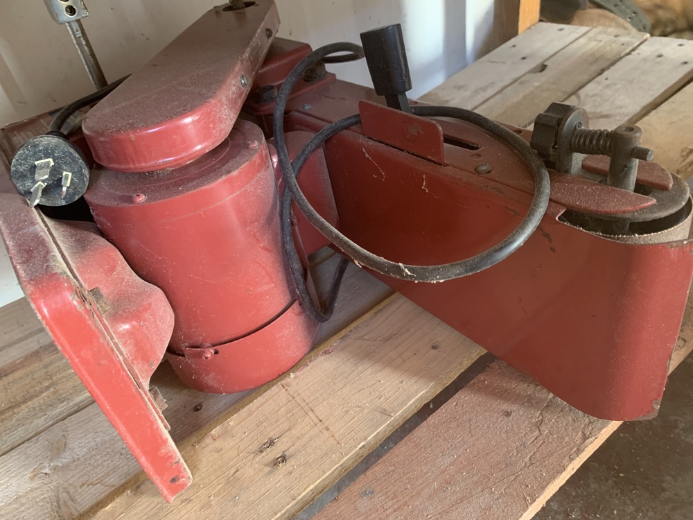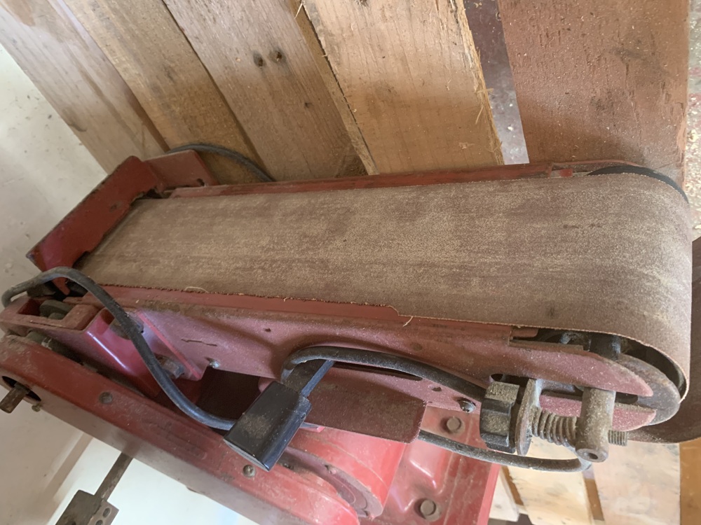 Large corded belt sander (red) Sanding belt installed and ready to use Built like a tank