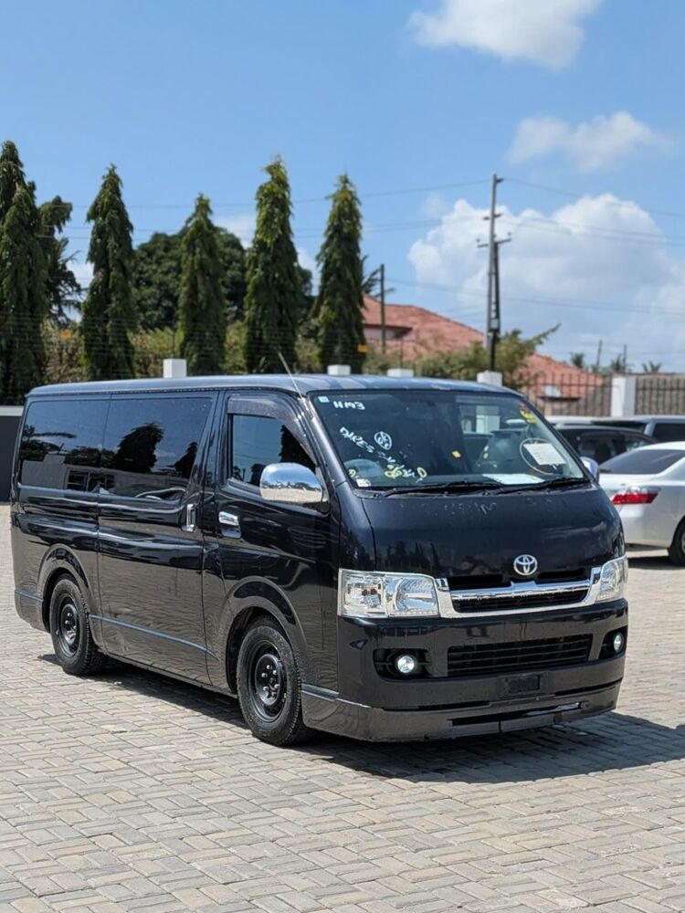 2005 TOYOTA HIACE VAN KDH200 Contact 0620876252 Price : 46,500,000/= With New Registration Contact 0620876252/0715781988 Engine Size : 3,000cc Fuel : Diesel Transmission : Automatic Mileage : 87,000km Colour : Black Seat : 5 Features : Fog Loghts | Rear Seat | Aftermarket Rear Lights | Music System 📍Location : Sinza Dar Es Salaam